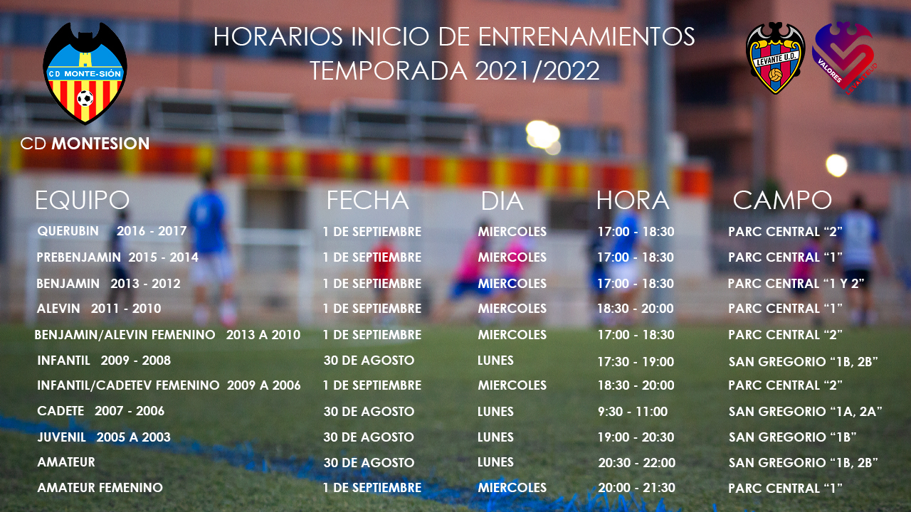 (VAL) Aci teniu els horaris de l'inici dels entrenaments